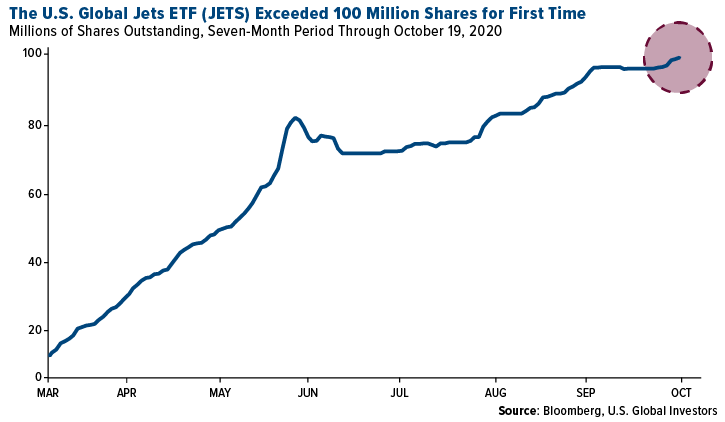 U.S. Global Jets ETF (JETS) Exceeds 100 Million Shares Outstanding